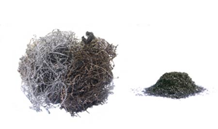 • briketteren van metalen krullen om het volume te verlagen en voor een optimale handelbaarheid